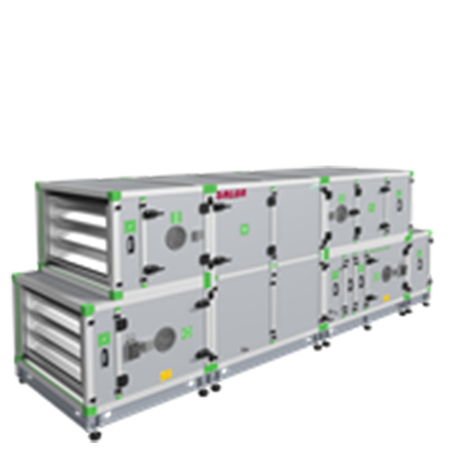 AmberAir-serien tilbyder modulære ventilationsanlæg (AHU), der er skræddersyet til at opfylde specifikke krav til luftstrøm og tryk. Disse enheder kan levere og/eller udsuge luft i forskellige retninger, afhængigt af konfigurationen. De er designet til at opvarme, køle og filtrere luft, hvilket optimerer energieffektiviteten og varmegenvindingen. Ventilationsprocessen kan styres af en enkelt integreret enhed eller konfigureres ved hjælp af flere moduler, baseret på installationens størrelse og specifikke behov.